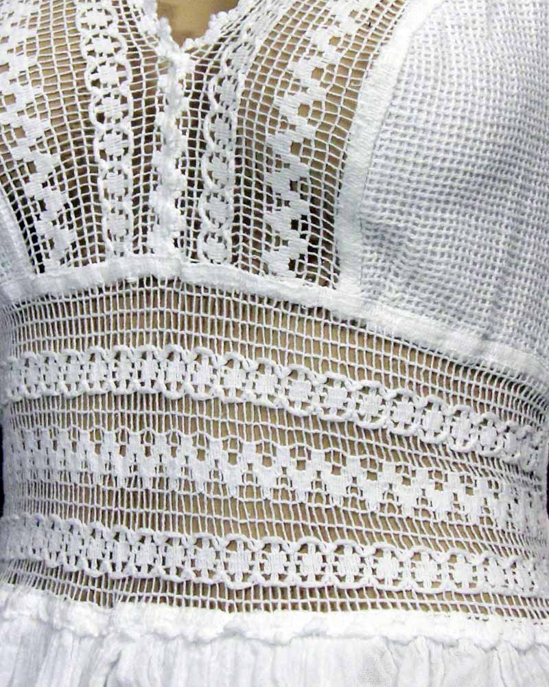 Aplicaciones y detalles artesanales de vestidos boho chic de algodón Pima